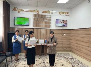 Жуалы аудандық орталық кітапханасында №5 «Балдырған» бөбекжай балабақшасының қызметкерлері Ж.Кашкеева, Ф.Тұяқова, Г.Кемелованың қатысуымен «Адамзаттың асылы — Ана деген» атты мерекелік кеш өтті. Кітапханашы Н.Сиркебаева «Батыр аналар — ел мақтанышы» атты кітап көрмесіне шолу жасады.