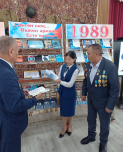Жуалы аудандық орталық кітапхананың кітапханашылары №1 Ш.Мұртаза атындағы мектеп-гимназиясы және №19 Д.Қонаев атындағы мектеп-гимназиясында Ауған соғыс ардагерлері Е.Тілеубеков, А.Абдыев, Б.Тәңірбергеннің қатысуымен «Біздің өлкенің қаһармандары» атты кездесу кешін өтті.