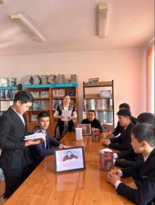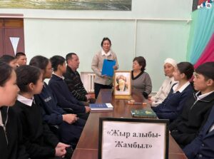 Жуалы ауданы Жетітөбе ауылдық округі Қоңыртөбе ауылдық кітапханасы №21 Дмитрий Пахомов атындағы орта мектебінің 9 сынып оқушылары мен қазақ тілі және қазақ әдебиеті пәнінің мұғалімі Сейтбекова Гүлжанның қатысуымен «Мұқағали Мақатаев — поэзия тұлпары» атты поэзияларына шолу кеші өтті.