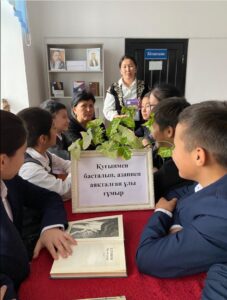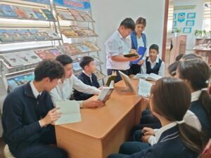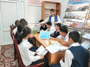 Жуалы аудандық орталық кітапханасы №1 Ш.Мұртаза атындағы мектебінің 8″В’ сынып оқушыларының қатысуымен «Жұмекен — қазақ поэзиясының алтын сандығы» атты дөңгелек үстел өтті.