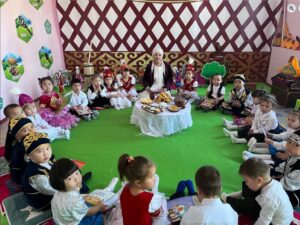 Жуалы ауданы Қызыларық ауылдық округі Ақтөбе ауылдық кітапханасында “Балбөбек” бөбекжай-балабақшасының “Өнерпаз” тобы бүлдіршіндерінің қатысуымен “Ертегім неткен, мұратына жеткен” атты сиқырлы ертегілер әлеміне саяхат өтті.