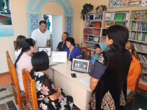 Жуалы ауданы Жетітөбе ауылдық округі Қоңыртөбе ауылдық кітапханасндаы №21 Д.Пахомов атындағы орта мектебінің тәрбие жөніндегі маманы Д.Абышев және кітапхананың оқырмандарының қатысуымен «Діни экстремизм мен терроризм — бейбітшілік пен тұрақтылыққа төнген қауіп» атты дөңгелек үстел өтті.