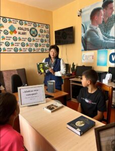 Жуалы ауданы Қызыларық ауылдық округі Ақтөбе ауылдық кітапханасы «Кітап және мейірімділік» мақсатты бағдарламасы аясында кітапхана оқырмандарының қатысуымен “Жақсылық аралына саяхат” атты өзекті диалог ұйымдастырды.