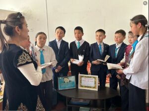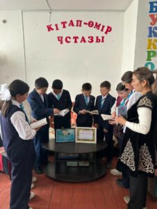 «Қазақстан Республикасындағы тіл саясатын дамытудың 2023-2029 жылдарға арналған тұжырымдамасы негізінде жергілікті жерден шыққан тұлғаларды насихаттау мақсатында Жуалы ауданы Қошқарата ауылының тумасы ақын, журналист Бауыржан Үсеновтың туғанына 65 жыл толуына орай Жуалы ауданы Жетітөбе ауылдық округі Кәріқорған ауылдық кітапханасында №7 Т.Әкімов атындағы орта мектебінің оқушыларының қатысуымен «Жапыраққа жазылған жыр» атты таным сағаты өтті.