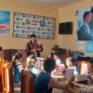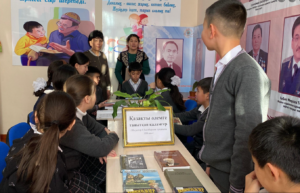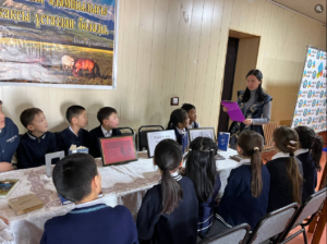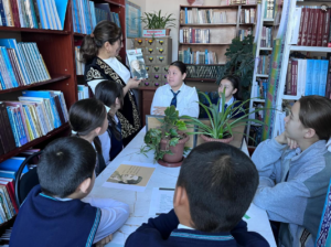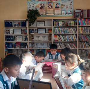 Жуалы ауданы Жетітөбе ауылдық округі Қоңыртөбе ауылдық кітапханасында №21 Дмитрий Пахомов атындағы орта мектебінің 4 сынып оқушыларының қатысуымен «Әбіш әлеміне саяхат» атты әдеби алаң өтті.