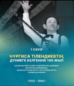 Бүгін – әйгілі күйші композитор, дирижер, домбырашы Қазақ КСР-нің еңбек сіңірген әртісі, Қазақ КСР халық әртісі, КСРО халық әртісі. Қазақ КСР Мемлекеттік сыйлығының лауреаты, «Халық Қаһарманы» Нұрғиса Тілендиевтің туған күні. Биыл Нұрғиса Атабайұлының туғанына – 100 жыл.