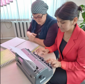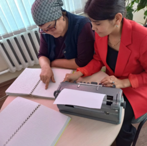 Жуалы аудандық орталық кітапхананың көзі көрмейтін және әлсіз көретін азаматтарға арналған бөлімінің кітапханашысы Замира Тұрғанбаева кітапхананың тұрақты оқырманы Тәттігүл Сағымбекованың қатысуымен «Сиқырлы алты нүкте» атты Брайль машинасы бойынша оқу ұйымдастырды.