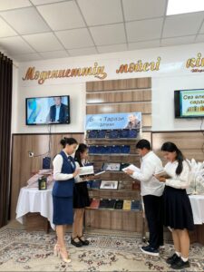 Жуалы аудандық орталық кітапханасы №1 Шерхан Мұртаза атындағы мектеп-гимназиясысының оқушыларының қатысуымен «Сөз әлімінің сардары» атты әдеби алаң өтті. Кеш барысында кітапхананың тұрақты оқырмандары Лесбек Әсет «Тасжарған» романынан үзінді оқыса, Нұржан Айару «Тауға, тасқа салғанда шағылмаған», Аяпберген Нұрдина «Ақ жұлдызды көгінен көрінгенде» өлеңдерін мәнерлеп оқып берді. Кітапханашы А.Тәліпбек «Әкім Тарази әлемі» атты кітап көрмесіне шолу жасап, кітап инсталлициясымен таныстырды.