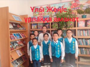 Жуалы ауданы Көкбастау ауылдық округі Бақалы ауылдық кітапханасында №44 Бақалы бастауыш мектебінің 4 сынып оқушыларының қатысуымен «Ұлы Жеңіс-ұрпаққа аманат» атты ерлік сағаты өтті.