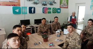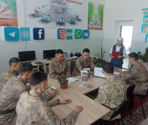 Жуалы ауданы Ақтөбе ауылдық округі Бәйтерек ауылдық кітапханасында «Ақсуат» шекара бекеті сарбаздарының қатысуымен «Ұрпаққа үлгі болған ерлік» атты әскери даңқ сағаты өтті.