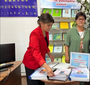 Жуалы аудандық орталық кітапхананың көзі көрмейтін және әлсіз көретін азаматтарға арналған бөлімінің кітапханашысы З.Тұрғанбаева кітапхананың тұрақты оқырманы Сағынбекова Тәттікүлге «Жүректерге жол тапқан» тақырыбында аудиотаспалар мен БНШ кітаптарын таныстырды